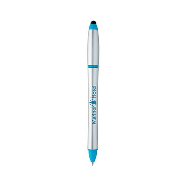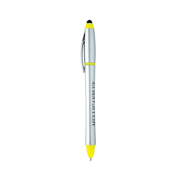 Love the feeling of flexibility with this stylus, highlighter and pen combo. With the trim matching the highlighter colour, the pen is a feat in design and practicality. A brilliant product for brilliant branding. Comes with black ink.