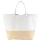 Fashion inspired elegant and smart eco-friendly Summer Jute Bag has soft padded cotton webbing handles for added comfort and a delightful combination of natural jute and cotton-like polyester. With a wide bottom gusset it creates a large capacity shopper. It has a magnetic top button closure and inside polyester liner with a small pouch for storing your receipts coins wallets and so much more. 40L capacity.