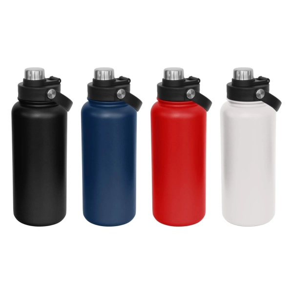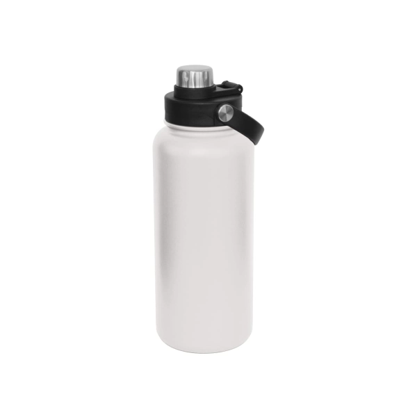 Sumo 1lt Vacuum Screw Cap Bottle is a premium large capacity high-performance, BPA-free insulated bottle built for everyday use. With pro-grade 18/8 double wall stainless steel and internal copper lining, it keeps drinks hot or cold for up to 12 hours. Its smart dual-opening lid allows for easy cleaning and ice cube access, while the twist-release stainless steel cap ensures smooth, spill-free drinking. A rotating carry handle adds convenience on the move. Finished with a tough matt powder coating and available in four stock colours, it’s presented in an eco-friendly natural gift box.