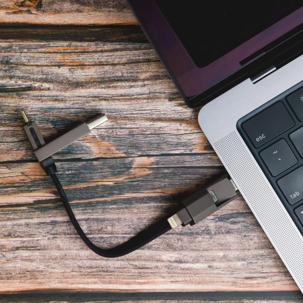 Introducing our versatile Power Cable with Combination Connectors, designed for maximum convenience and functionality. This 20cm cable features connectors for Type A to Type C/8 Pin or Type C to Type C/8 Pin, offering compatibility with a wide range of devices. It supports fast charging and data transfer, delivering a maximum power of 5A. The cable comes with a magnetic closure and a rubber cap to protect the connectors from damage. Its compact design includes metal ends with a black ribbon cord and can double as a keyring for easy access. You have the option to package this product in a black gift box, making this cable perfect for practical and stylish gifting.