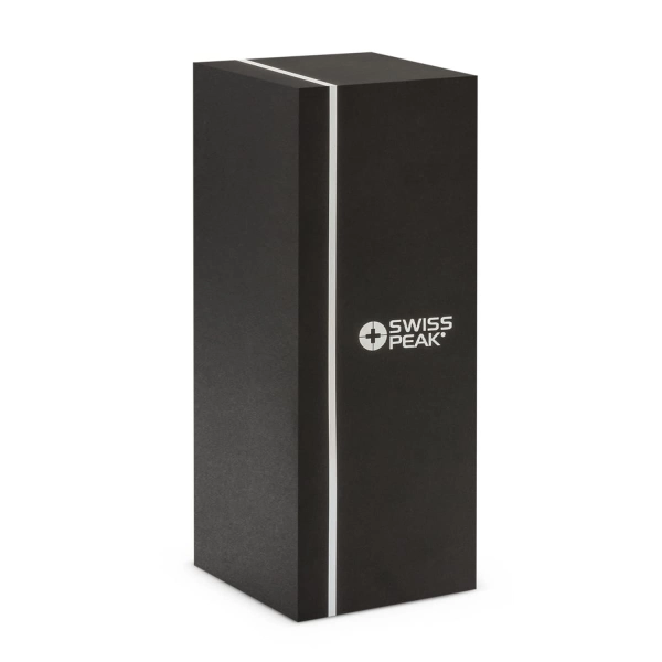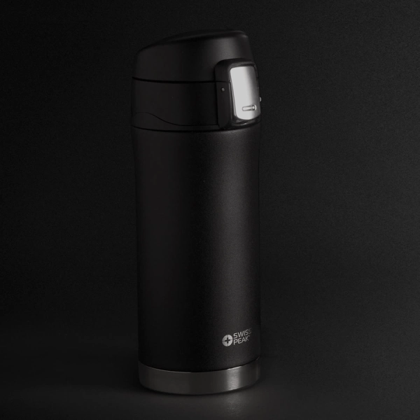 Premium 300ml double wall, vacuum insulated stainless steel coffee mug. It has a unique copper lining on the inner wall which improves its performance and the outer wall has a tough powder coated finish. Elite will keep drinks hot for up to 12 hours and cold for up to 24 hours. It features a secure screw on lid with a push button activated flip closure which is spring loaded for smooth, effortless operation. The locking mechanism on the lid prevents leaks and spills even if the cup is knocked over. This precision coffee mug is BPA-free and laser engraves to stainless steel finish. It is presented in a Swiss Peak gift box with an information leaflet included. This product is not dishwasher safe and handwashing is recommended.