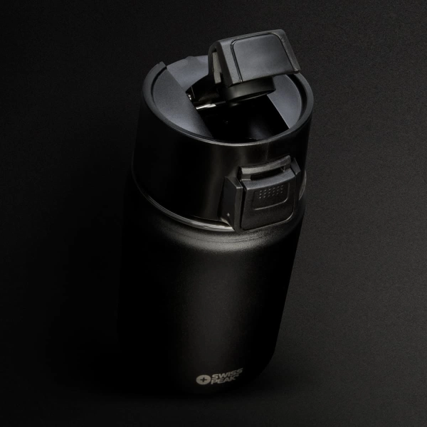 Timeless Swiss Peak design is evident in this smart 350ml double wall, vacuum insulated stainless steel cup with a smart powder coated finish. Stealth will keep drinks hot or cold for hours and features a secure screw-on lid with a push-button activated flip closure which is spring loaded for smooth, effortless operation. This precision cup is BPA-free, and laser engraves to shiny steel finish. It is presented in a Swiss Peak gift box with an information leaflet. This product is not dishwasher safe, and handwashing is recommended.