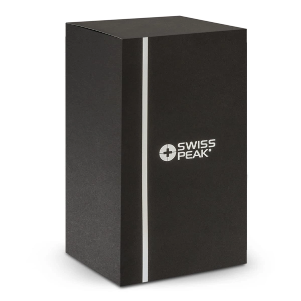 * Presentation: Black gift box with Swiss Peak branding