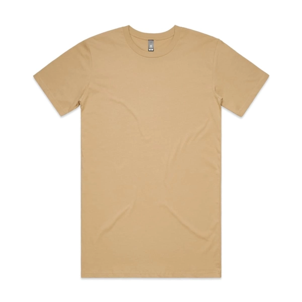 Extra long body roughly 10cm longer than our standard tees, neck ribbing, side seamed, shoulder to shoulder tape, double needle hems, preshrunk to minimise shrinkage