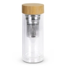 Elegant 350ml, double wall borosilicate glass bottle which maintains hot or cold drink temperatures for longer and remains comfortable to hold. It has a removable stainless steel infuser for tea or fruit and a secure screw on bamboo lid. The bottle is BPA-free and is manufactured from borosilicate glass which is incredibly light and very strong. Bamboo is a natural material which produces unavoidable variances in the grain pattern, colour, and branding. This product is not dishwasher safe, and handwashing is recommended.