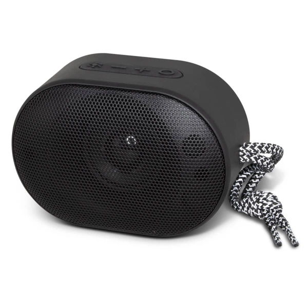 Powerful 7W outdoor Bluetooth speaker which is compatible with all mobile devices that support Bluetooth. Terrain is water-resistant, making it well suited for outdoor use and can also be used with an audio cable. This compact speaker is perfect for music on the go, featuring an ambient light function with ten light display settings, a built-in microphone for phone calls, a safety alarm, and a woven carry handle. Music playback can be controlled directly from the speaker. Playing time is up to five and a half hours and the speaker is easily recharged from a laptop, a power bank or a USB mains adapter. Terrain is presented in a gift box with a Micro-C USB cable, an audio cable and an instruction leaflet.