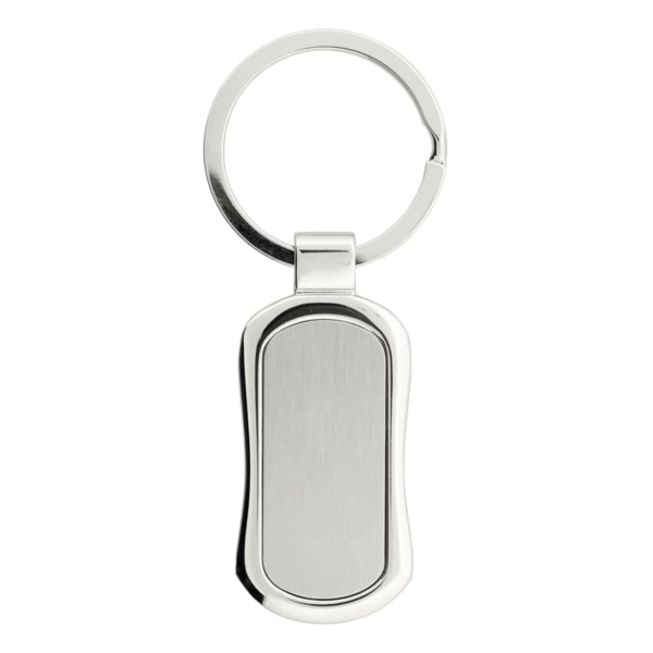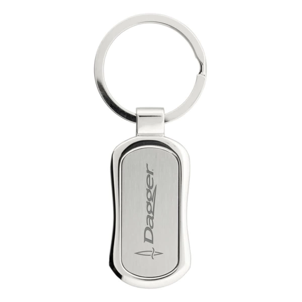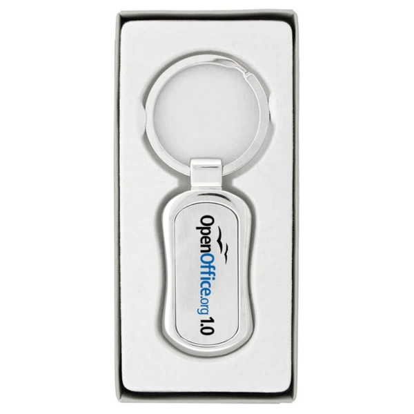 The Corsa Keychain boasts an oval matte/frosted metal design with polished chrome metal accents, offering a sleek and modern look. It comes packaged in a gift box, making it an excellent choice for premium giveaways or corporate gifts.