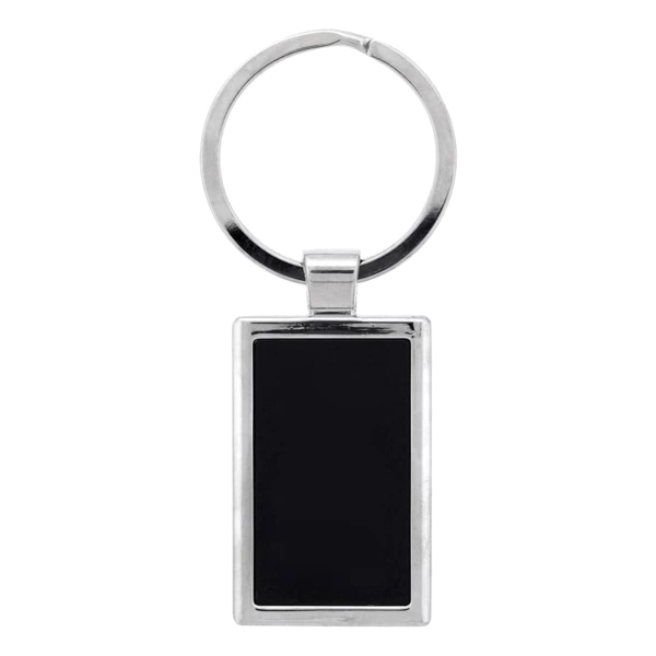 The Damiano Keychain features a polished chrome metal design with a sleek mirror black front, offering a stylish and modern look. A great option for personalisation or as a premium giveaway.