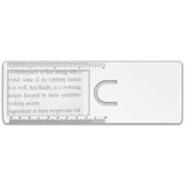 The Easy Reader Magnifier Ruler is a slim, paper-thin magnifier that doubles as a 10cm metric and 4-inch imperial ruler. It also features a handy page or bookmark clip, making it a practical tool for reading, measuring, and staying organised.