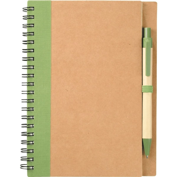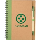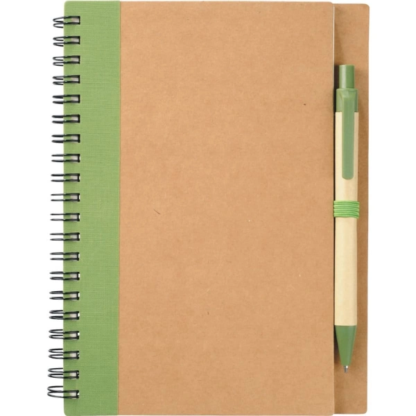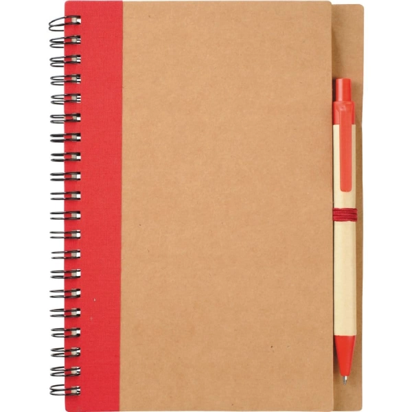 Spiral notebook with matching ballpoint pen. Includes 60 ruled pages and matching colour elastic pen loop. Pen imprint not available. Pens packed separately.
