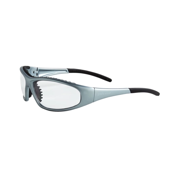 Wrap around dual lens | Light weight medium impact safety eye wear | Polycarbonate lens, Polycarbonate arms | Rubber temple grips and nose pad | 8 base curve lens | Close fitting, compact eyewear with fore head rubber dust seal | Rubber nose bridge and temple inserts for grip and comfort | Chrome Polycarbonate frame | 12 inner packs per Carton | Certified to AS/NZS 1337.1:2010 SMK02742 SAI GLOBAL