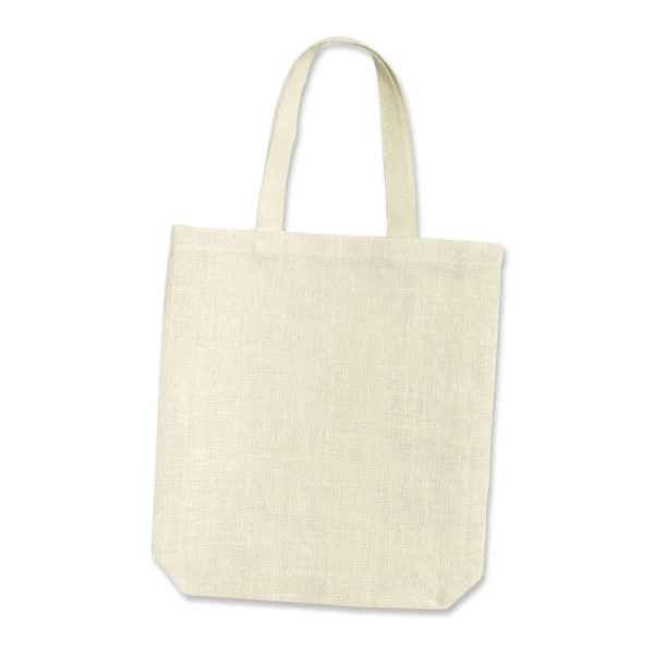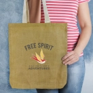 Large jute tote bag with strong cotton webbing handles. It has a gusset in the base for increased carrying capacity.