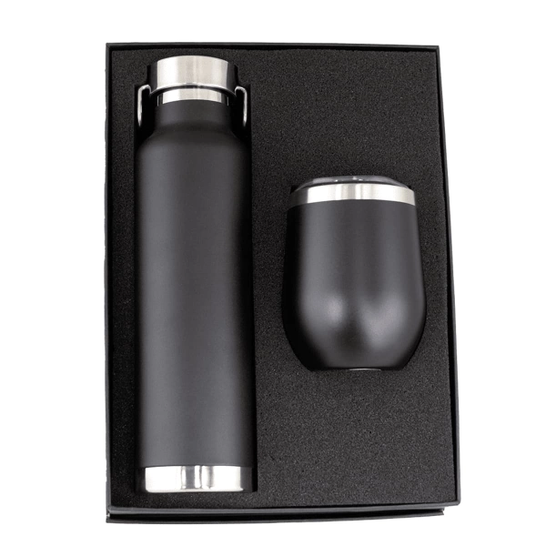 This elegant gift set is made up of the model 4075 Thor drink bottle (650ml) and the 4090 Corzo tumbler (350ml).