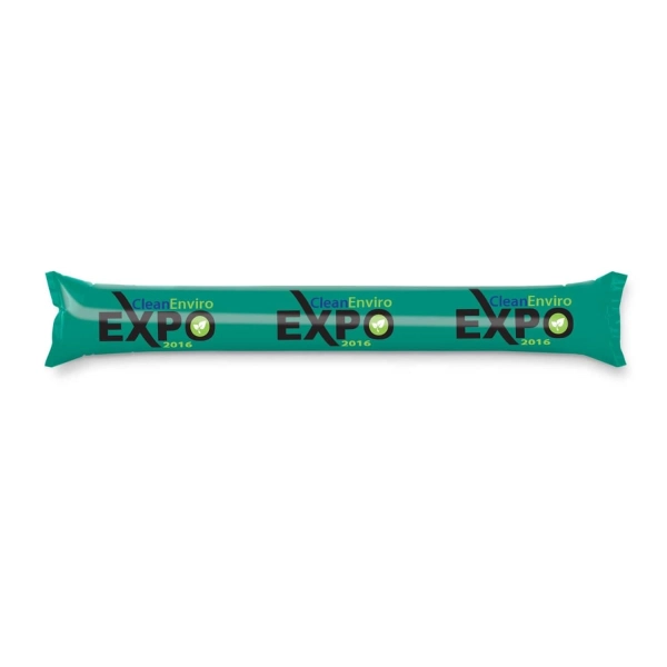 Set of two inflatable supporters sticks for sporting events which are supplied with an inflation tube. The massive print area ensures the message or logo is seen by the rest of the crowd and they are perfect for televised events. The tubes are manufactured from white plastic film and can be branded in spot colours on one or both sides. There is a setup charge for each colour including the background colours. A production lead time of 20 working days applies to this product by air freight and larger orders can be sea freighted on request to reduce the freight cost.