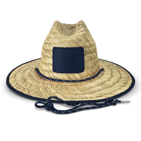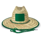Classic wide brim straw hat with coloured trim. This breathable hat is ideal for summer months and features a large woven polyester patch that provides an affordable and prominent branding opportunity. The hat has an adjustable chin strap with a toggle and metal aglets, and is available in three sizes to fit most people.