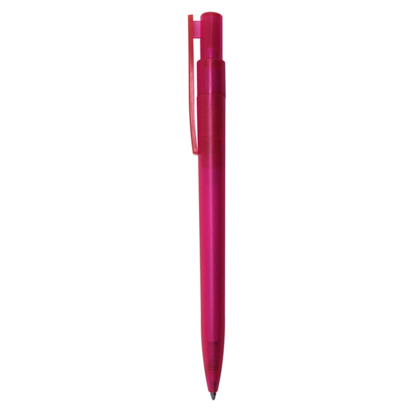 Click action European design plastic pen transparent coloured barrel and trim large printing area on clip. It has high quality German manufactured black ink refill 1800 meters writing distance tungsten carbide ball provides you with quality writing.