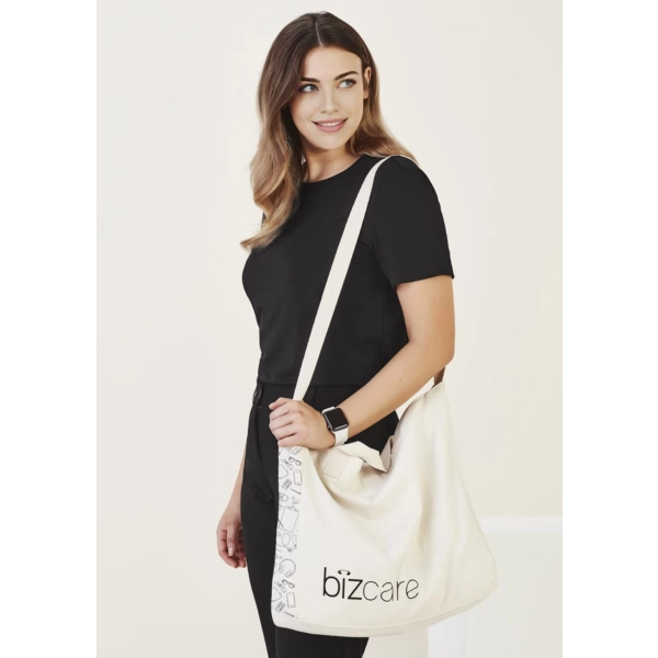 Inside pocket, metal clip for keys, removable hard base and attached short and long handles.