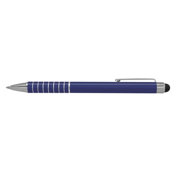 * Compact twist-action aluminium ballpoint pen with a stylus