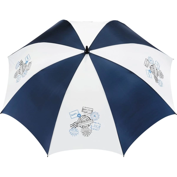 Manual opening umbrella with large canopy and matching colour case with shoulder strap.