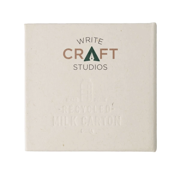 Keep your notes within easy reach with this handy block of 200 white note pages, made from recycled milk cartons. Housed in a recycled cardboard cover, it’s an eco-conscious choice for any desk. Each page is securely bound for easy scribbling, jotting reminders, or leaving messages—then tears off cleanly when needed. The cover features an embossed recycled milk carton logo on the back, proudly showcasing its sustainable roots.