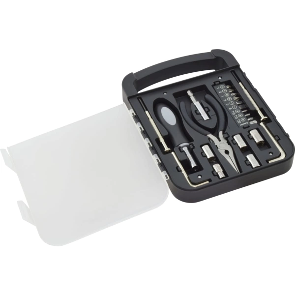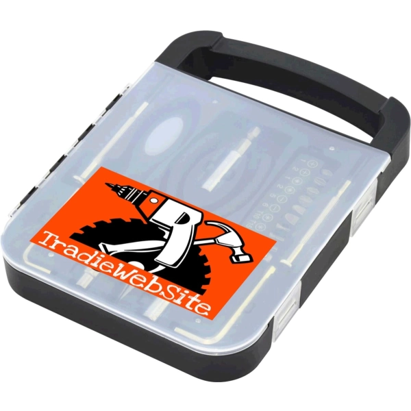 Tradie Tool Kit combines twenty useful tools in one must-have kit. Designed for use around the office or at home, these tools remain secured in place until needed. Featuring solid construction, a carry handle and see-through lid displaying your logo for all to see.