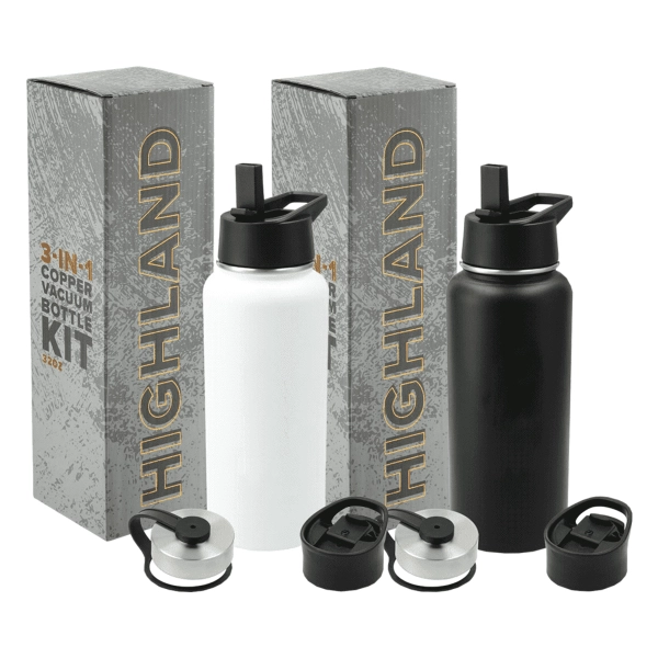 The Trekk Highland 3-in-1 Copper Vacuum Insulated Bottle Kit 950ml is the perfect item for an active lifestyle. The kit includes three types of lids, a screw-on straw lid, a screw-on chug lid and a screw-on flip closure lid.