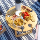 Get ready for sunny days with our Trekk Picnic Table. Ideal for beach outings, park dates or camping adventures, this table accommodates a bottle of wine and up to 4 glasses. Its also convenient for serving snacks and dips. Constructed with sturdy legs for stability, and folds flat for convenient storage and transport. Not recommended as a cheese board.