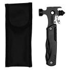 Trekk Hammer multi tool supplied with a nylon belt carry pouch. The Trekk hammer stainless steel tool comes with 16-piece functionality including pliers, glass window breaker, screwdriver, knife and seatbelt cutter.
