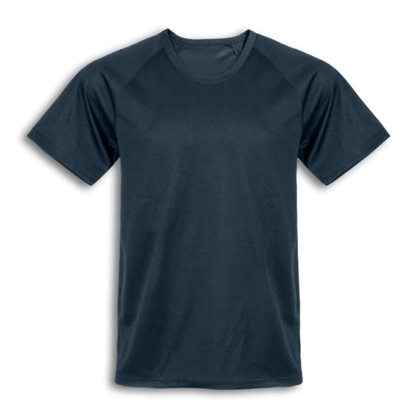 * Lightweight men's sport t-shirt fabricated from 100% polyester for a quick-drying feel