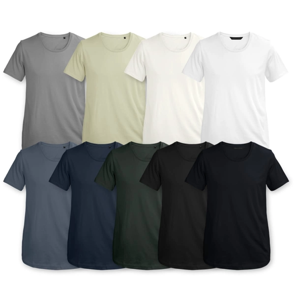 The Carmen Women's T-Shirt is crafted from a breathable 180gsm cotton-poly blend that's soft, easy to wear, and built to last. The wider ribbed neckline and curved hem give it a contemporary silhouette, while reinforced shoulder-to-shoulder binding adds extra structure. The fabric is OEKO-TEX Standard 100 certified, having been independently tested for harmful substances and proven safe for skin contact. Available in seven Australasian sizes.