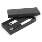 Stylish gift set with high perceived value which features a Turbo Pen and a 4GB Helix Flash Drive presented together in a smart black gift box. The flash drive can be mixed and matched in any colour combination from the colour palette at no extra cost. The pen and flash drive are only approximate colour matches.