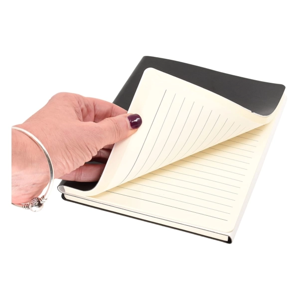 Styled in Europe, Two to Tango combines 2 notebooks in one. The front section includes lined paper while the back features blank paper – the perfect combination for writing in the front and free-form drawing in the back. The leather-feel flexible cover utilises a horizontal elastic closure which double as a handy pen loop (pen additional). Notebooks available with a 2-tone cover, black front cover and white back. If you’re after a debossed notebook, check these out!