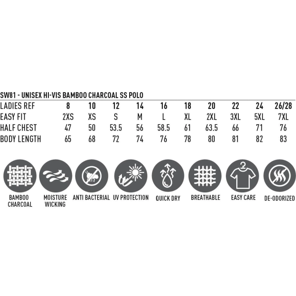 Unisex Hi-Vis Bamboo Charcoal S/S Polo
