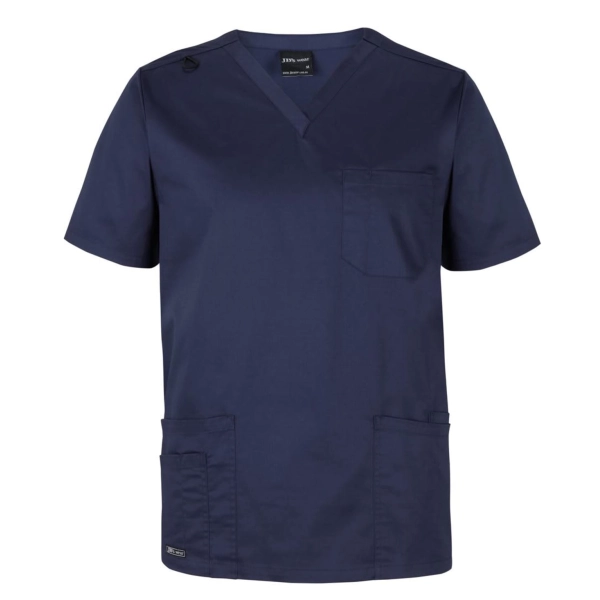 Urban fit | 58% Cotton 40% Polyester 2% Elastane, 160gsm | V-neck top, set in sleeve and side vent | 2 double front patch pockets - RHS pocket with key loop and pen compartment | 1 Front chest pocket with pen compartment | ID loop at RHS shoulder