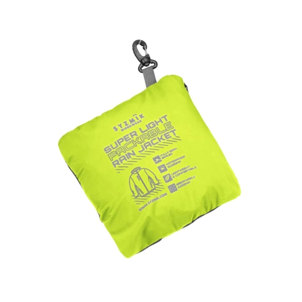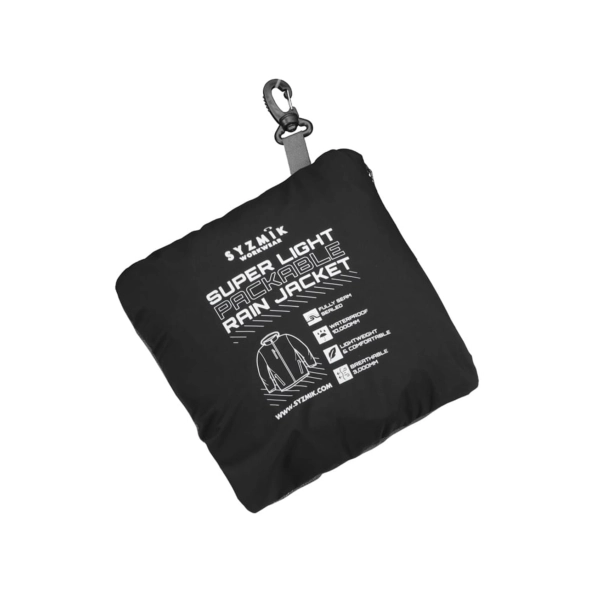 The packable pocket includes a carabiner so the jacket can be clipped to your belt or into your car