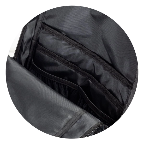 Camouflage backpack manufactured from 300D and 210D polyester. It has a practical straight front pocket, 4 internal slip pockets and a padded PE foam back for comfortable carrying. Other features include adjustable padded shoulder straps, a carry handle, and a water bottle holder.
