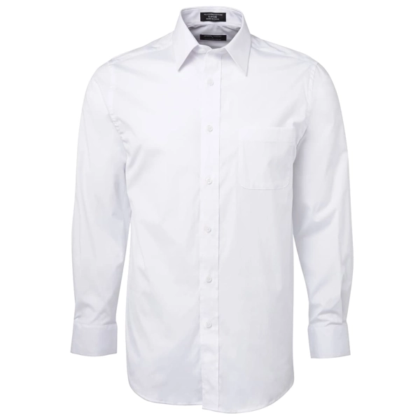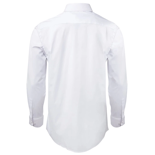 Urban Fit | Cotton/Polyester/Elastane, 115gsm | 2-piece collar and collar stand | CF button opening | Front chest pocket | Double back yoke with two pleats | Curved hem | Set-in sleeves; long sleeves with 2-button adjustable cuff | Individually packed in JB’s logo bag with fit measurement guide
