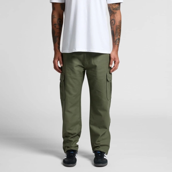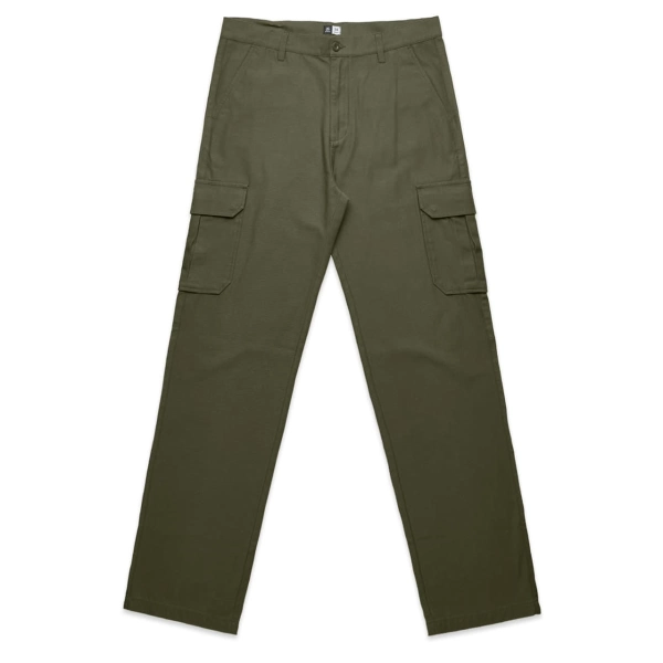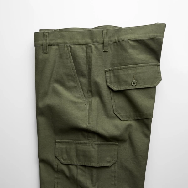 Two side pockets, cargo pockets at side seam with domes to close, two back pockets with buttons to close, belt loops on waist, button closure, black-nickel metal YKK zip fly, binding on internal seams, preshrunk to minimise shrinkage