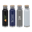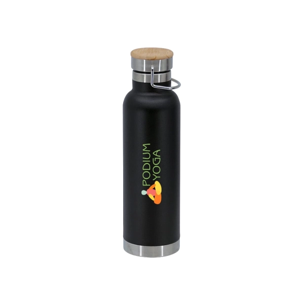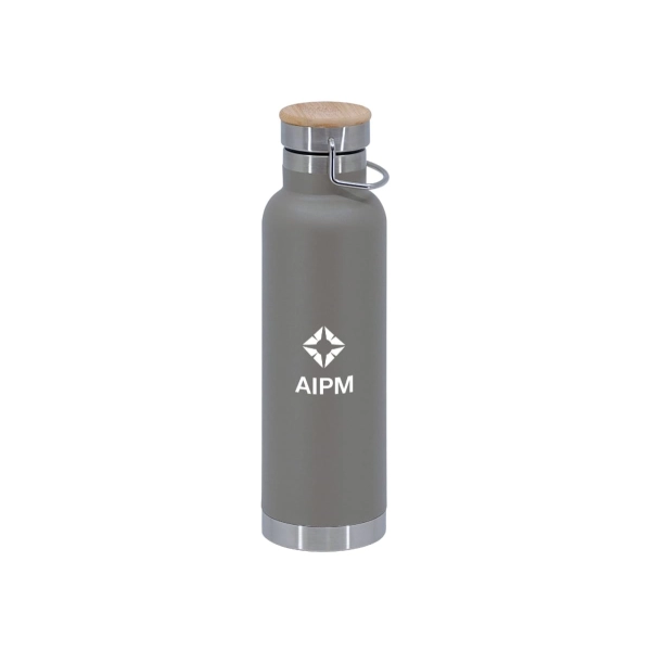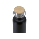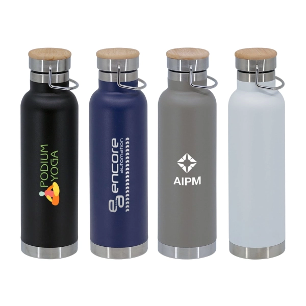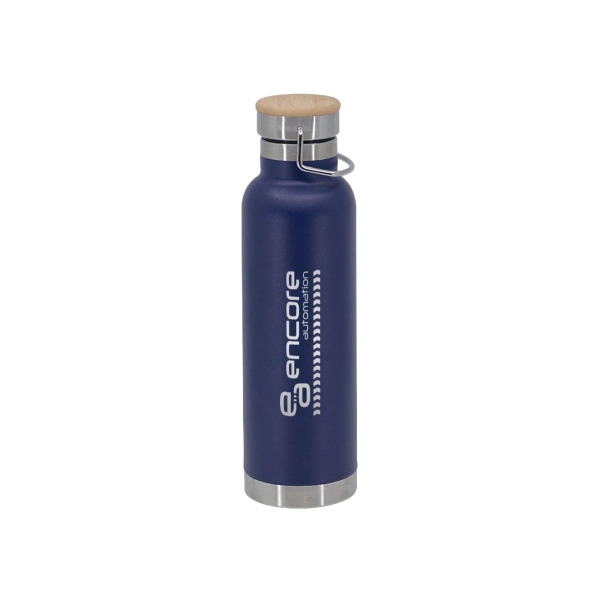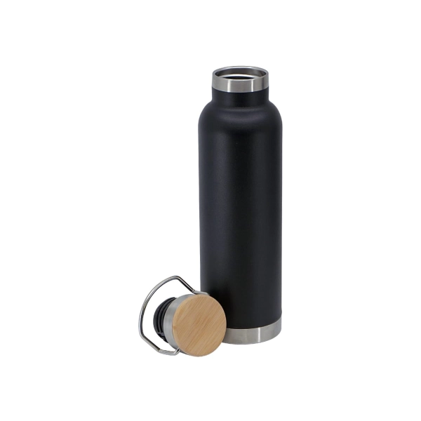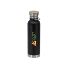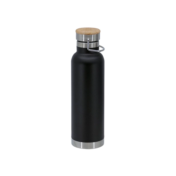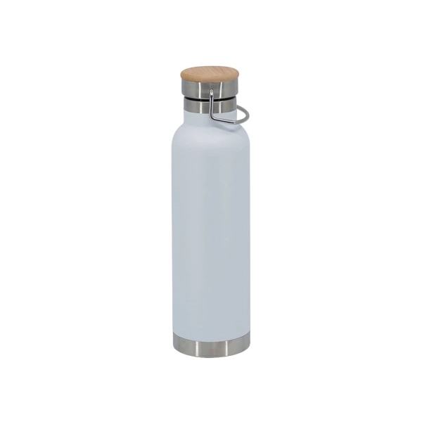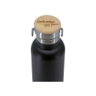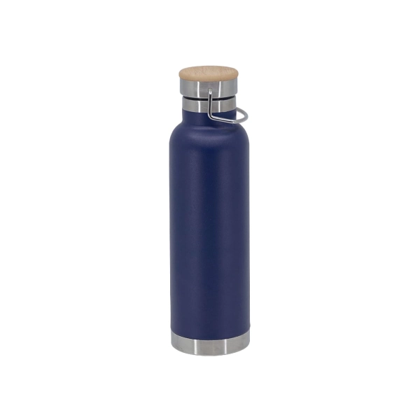 This top of the range BPA free insulated vacuum flask is your perfect companion when going on a picnic, a bush walk or even sitting in the office. It features our pro-grade 18/8 double wall stainless steel construction, unique internal copper lining (designed to keep drinks hot or cold for up to 24 hours), stylish bamboo lid and a tough stainless steel swivel handle. This 650ml capacity flask has a super tough matt powder coated finish and is available in black, navy, grey or white and is supplied packed in a natural coloured gift box.