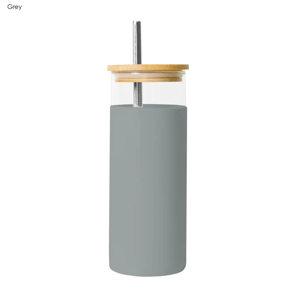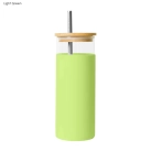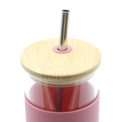 480ml Vanisa Glass Drink Bottle with a silicone sleeve made of single-walled borosilicate glass which is suitable for both cold and hot. Transparent and pure with comfortable touch. Free of plumbum and BPA which is ecofriendly and a healthy drinking water style. Split proof tight sealed bamboo lid to ensure no spillage and a metal straw held tight by a coloured rubber eyelet on the lid. Colourful silicone protective sleeves can meet boys and girls fashion styles. Soft silicone material is isolated heat and anti-skid with comfortable touch and also protects the glass bottle body.