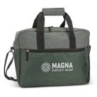 Sophisticated business satchel which is also ideal for use as a conference bag. It is manufactured from a combination of on-trend heather style 300D polyester and 600D polyester. Velocity has a distinctive front pocket and gusset which have an eye-catching patterned finish. The front pocket and main compartment have zippered closures. Other features include a padded internal sleeve for a laptop or a tablet, woven carry handles with a Velcro cuff, an adjustable woven shoulder strap and smart zipper pulls.