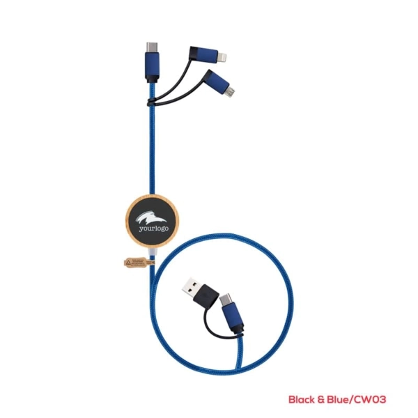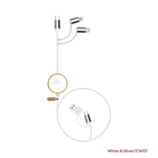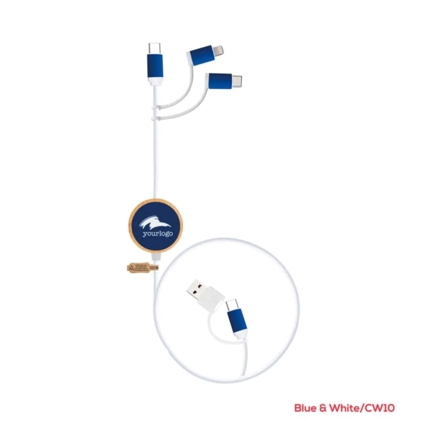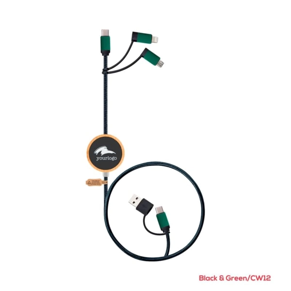 The Veneto charge cable features a bamboo case and distinctive LED branding that brings your logo to life. This cable delivers an output power of 60W (max) and supports high-speed charging and data transfer speeds of up to 480 Mbps. It is a versatile cable that can charge iPhone and Android smartphones, tablets, laptops, and all other USB-powered devices. The Veneto is eco-friendly, with 55% recycled materials and high-quality copper wire. It has the essential charging connectors, including Type-C, Lightning, and Micro USB. It is compatible with all devices and supports QC2.0, QC3.0, 60W Power Delivery, Samsung Fast Charging, Android Auto, and Apple Car Play. Additionally, the Veneto comes in a customised recycled kraft box to enhance your brand. Materials used include Bamboo, RPET, RTPE, RABS, RPE, and Copper.