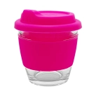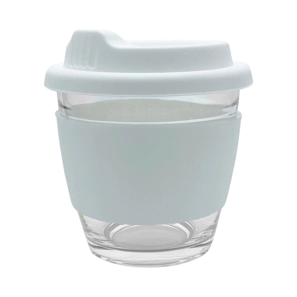 A trendy 250ml reusable glass coffee cup which is made of borosilicate glass the cup has a heat-resistant silicone band and push on silicone lid they are made of European standard silicone material in 13 standard colours can be mixed and matched in any colour combination. It is presented in a cardboard box with a window you can also select the gift tube to pack the cup and have your logo printed on the tube. Protect the planet and help to reduce plastic pollution by choose eco-friendly glass coffee cups as a marketing gift. This cup is not dishwasher safe and handwashing is recommended. Note the silicone band/lid is not recyclable material.