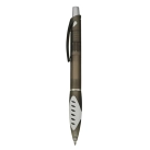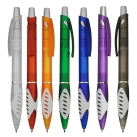 A modern design plastic pen features a frosted translucent barrel and a white panel patched soft-touch grip matt silver push button and shiny chrome trim high quality Parker-Type German manufactured black ink refill and tungsten carbide ball which brings you the better writing quality 1200 meters writing distance.