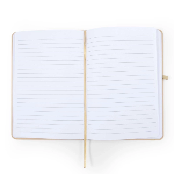 Introducing the Venture A5 Natura Notebook, a perfect blend of style and functionality. This A5 notebook features a hard cover in a natural colour with a matching elastic strap, pen loop, and page marker. With 80 leaves of 160 lined white pages (70GSM), it provides ample space for your notes, and ideas. Ideal for both personal and professional use.