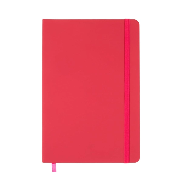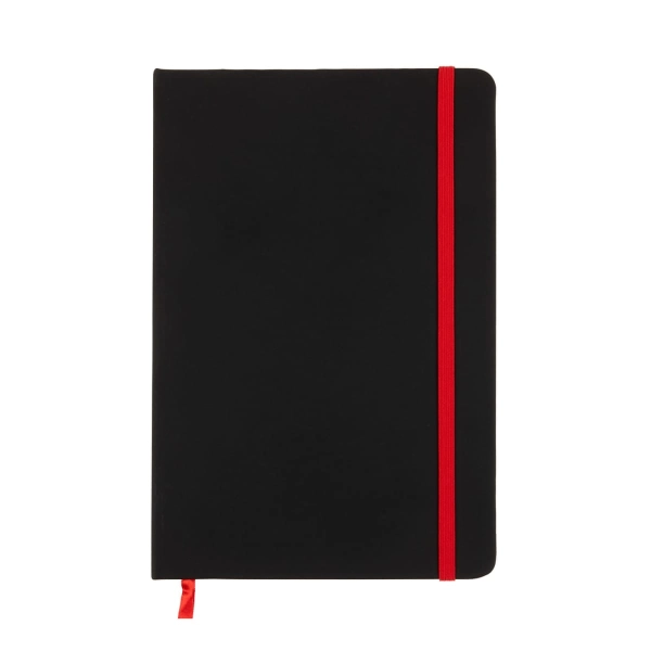 Introducing our stylish A5 size Notebook, designed to keep your notes organised in style! It features a coloured elastic retaining closure and a matching ribbon page marker for easy bookmarking. With 96 leaves and 192 lined cream pages (70GSM), there's plenty of space for all your writing needs. Available in 14 vibrant colours, you can choose the perfect one to match your style or brand. Customise it further with your logo or design using our screen print or digital print decoration methods. Ideal for schools, offices, or as promotional items, this notebook is both functional and fashionable.