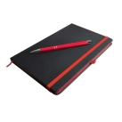 Elevate your notetaking with the Venture Supreme Notebook and Napier Pen. This A5 notebook features a stylish matching colour elastic retaining strap, a convenient ribbon page marker, and coloured edge pages, ensuring your notes stay organised and easily accessible. The notebook includes 80 leaves of 70GSM lined cream pages, providing ample space for all your thoughts and ideas. Paired with a matte finish, push-button aluminium pen, this set offers a smooth and enjoyable writing experience. Available in a variety of vibrant colours, the Venture Supreme Notebook and Napier Pen set is the perfect companion for professionals, students, and creatives alike. Includes items: LL5089 Venture Supreme Notebook., LL3271 Napier Pen.