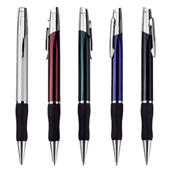 Twist action metal pen with rubber grip made of copper metal metallic painted barrel under-coated with shiny silver chrome which engraves to a mirror finishing image. Shiny silver chrome fittings and has a metal Cross-Type German manufactured black ink refill 1800 meters writing distance tungsten carbide ball provides you with quality writing.