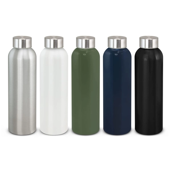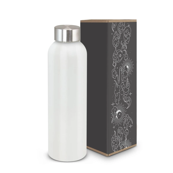 Deluxe 600ml aluminium drink bottle with a timeless design and a smart painted finish. It is BPA-free, has a secure stainless steel screw on lid. It can be presented in an optional gift box. The bottle is not dishwasher safe, and handwashing is recommended.