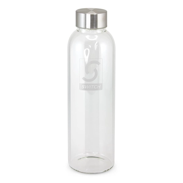 Deluxe 600ml borosilicate glass drink bottle which features a secure screw on stainless steel lid that can be laser engraved with a logo. Borosilicate is a lightweight glass that is exceptionally strong and shatter-resistant. Glass is a natural choice for a clean, pure taste and is a safe and reusable plastic alternative. This product is not intended to be used with carbonated or hot liquids. It can be presented in an optional gift tube. The bottle is not dishwasher safe and handwashing is recommended.